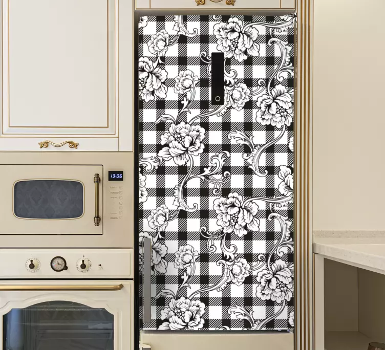 Introducing our stunning Floral wall sticker floral check design, a beautiful blend of floral and checkered patterns that brings a touch of elegance to any space! This design features a captivating black and white aesthetic, making it perfect for your fridge or refrigerator, adding a modern yet sophisticated flair to your home decor.