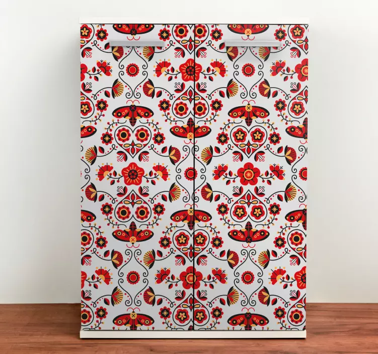 Introducing our stunning Fridge sticker botanical design artwork, a vibrant fusion of nature and art that will transform your kitchen space! This exquisite design features colorful butterflies, ornate floral patterns, and a charming folk aesthetic that brings life to any flat surface. The interplay of flowers and furniture motifs creates a mesmerizing visual experience, making your fridge a captivating centerpiece in your home.