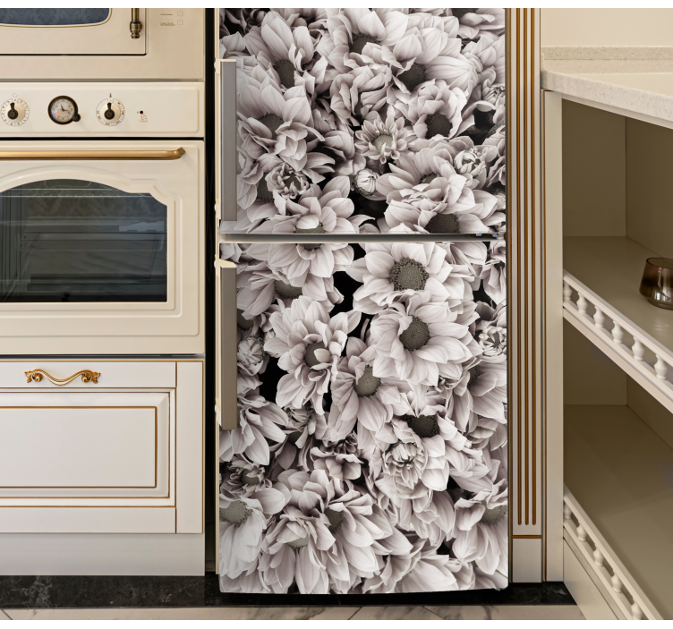Transform your kitchen with our Fridge sticker elegant floral design, featuring a stunning graphic of peonies in a graceful black and white palette. This realistic depiction of flowers brings a touch of nature indoors, making it the perfect addition to any refrigerator or oven. With its elegant floral design, this sticker enhances your kitchen decor, creating a serene and stylish atmosphere.