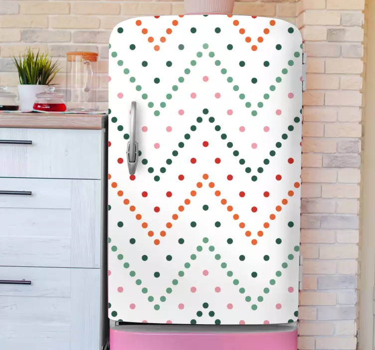 Bring a splash of life to your kitchen with our Fridge sticker vibrant chevron pattern. This stunning design features a delightful mix of dots, zig zag lines, and polka dots in a vibrant palette that radiates modernity. The colorful zigzag pattern will instantly uplift your fridge, making it a focal point in any room!