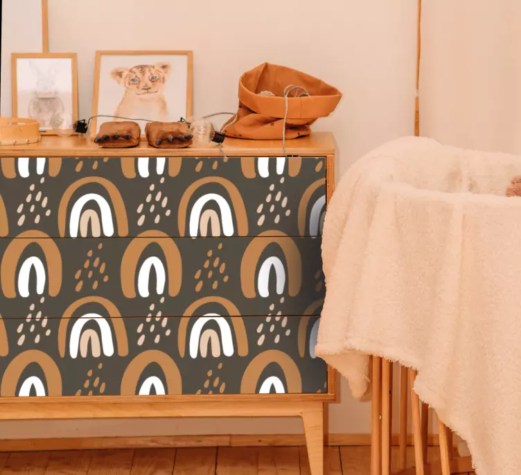 Transform your space with our vibrant Furniture sticker colorful arch designs. This stunning design features playful rainbows and whimsical raindrops arranged in a geometric pattern that adds a modern and textured feel to any furniture. The colorful hues create a lively atmosphere, perfect for brightening up your home or office!