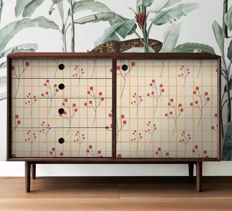 Introducing our stunning Furniture sticker floral pattern chest, designed to bring a vibrant touch to your home decor! This beautiful design features a delightful mix of checkered patterns and colorful berries, perfectly arranged in a floral motif. The grid-like appearance enhances its charm, making it an eye-catching addition to any drawer or furniture piece. Transform your space with this enchanting furniture sticker that radiates joy and liveliness!