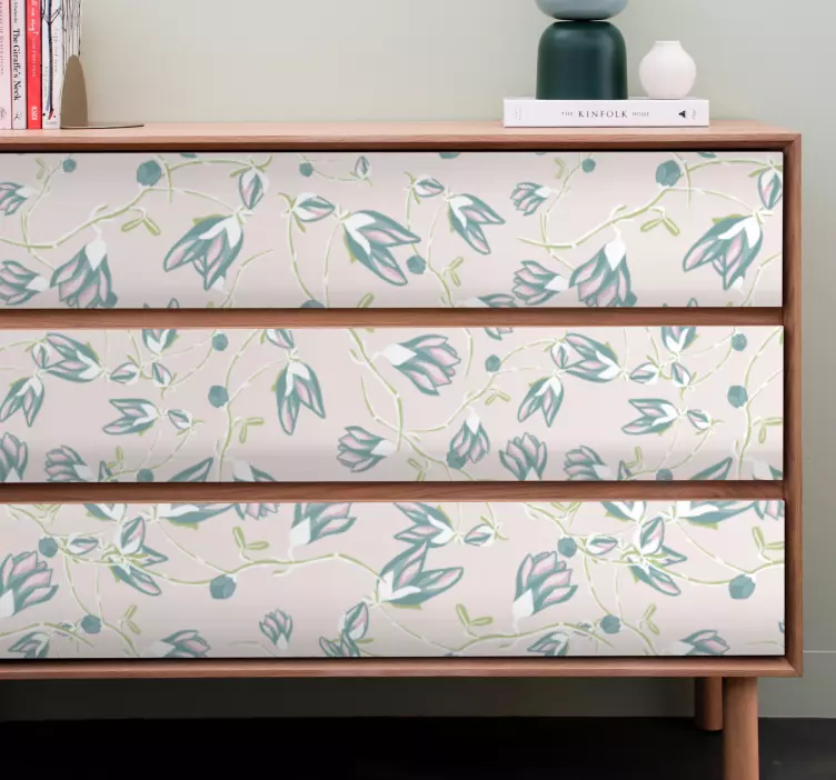 Transform your living space with our Furniture sticker floral patterned drawer, featuring an exquisite design that beautifully intertwines flowers and leaves in shades of pink and green. This stunning floral pattern adds a touch of elegance and vibrancy to any piece of furniture, making it a perfect choice for those who appreciate nature's beauty in their home decor!
