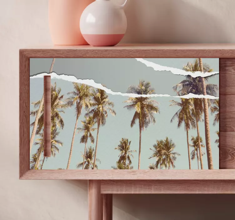 Transform your space with our stunning Furniture sticker tropical palm landscape. This design features a serene tropical scene filled with palm trees, evoking a peaceful connection with nature. The unique torn paper effect adds depth and character, making it an eye-catching addition to any home. Embrace the tranquility of a tropical paradise and bring the beauty of nature indoors!