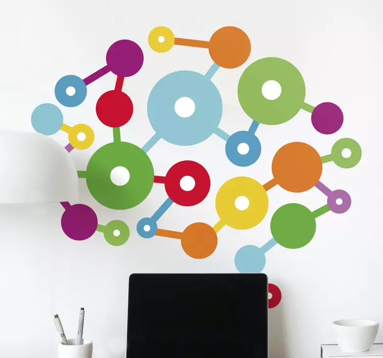 Transform your space with our Geometric wall sticker colorful circular links, featuring a stunning design that evokes a sense of creativity and modernity. Graphically, this product showcases a vibrant array of patterns that resemble abstract neurons, creating a brain-like structure. The colorful and geometric elements come together harmoniously, making it a perfect addition to any contemporary decor.