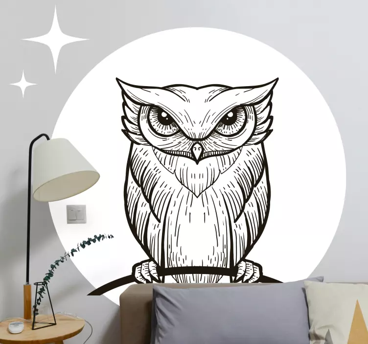 Transform your space with the stunning Headboard wall sticker intricate wise owl. This enchanting design features a beautifully detailed circular illustration of a wise owl surrounded by twinkling stars, all in elegant black and white. It captures the essence of nature with its intricate details, making it a captivating addition to any room!