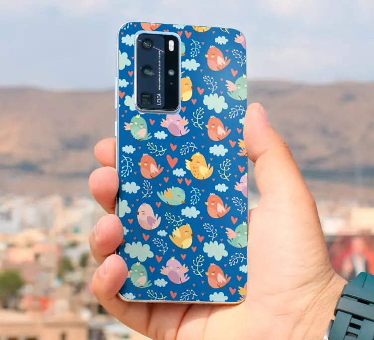 Introducing the Huawei sticker lively bird design, a delightful blend of cartoon charm and vibrant hues! Featuring playful birds, whimsical hearts, and fluffy clouds, this design is perfect for adding a splash of color to your phone. Its colorful aesthetic is sure to bring a smile to your face and brighten your day! Ideal for those who appreciate fun and lighthearted decor!