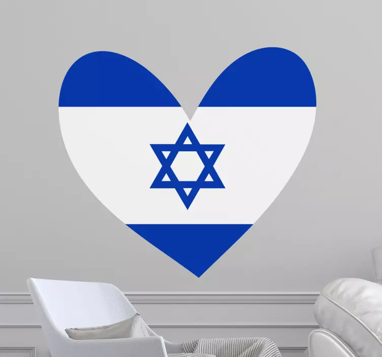 Transform your living room into a modern and stylish space with this stunning wall decor. Featuring the Israel flag in a heart-shape, this beautiful decal will add a touch of elegance to your home. The blue and white design will complement any color scheme, making it a perfect addition to your home.