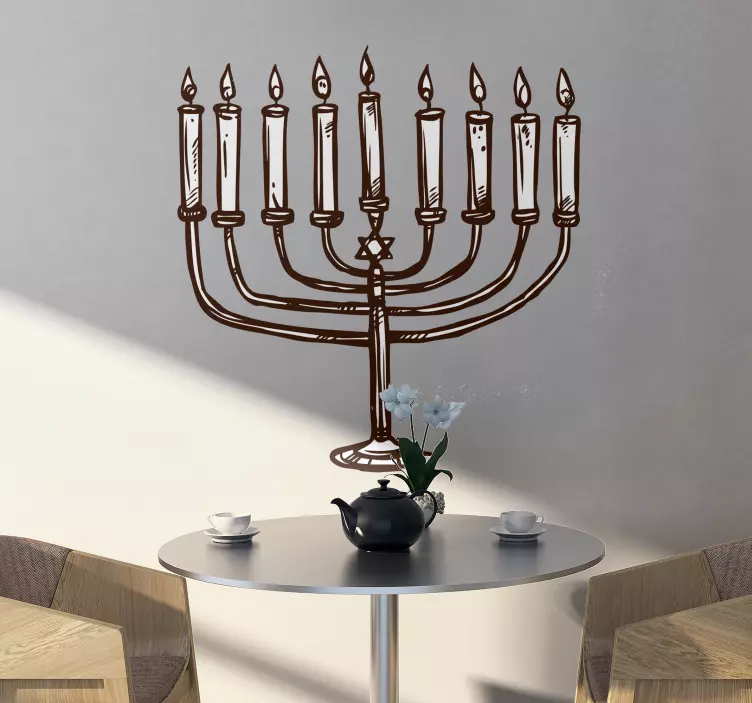 Experience the beauty and tradition of Hanukkah with this exquisite chandelier icon wall decal. Featuring nine branches, this sticker is a perfect addition to your home decor during the Jewish holiday season.
