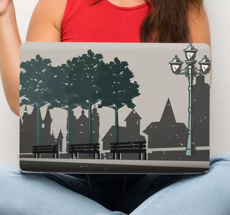 Transform your laptop into a vibrant canvas with our Laptop skin urban park landscape. This stunning design captures the essence of a serene urban park, featuring 70's inspired silhouettes, charming lamp posts, and a picturesque cityscape filled with lush trees and inviting benches. The interplay of the urban environment and natural elements make this laptop skin a perfect blend of style and creativity, bringing life to your device while reflecting your personality!