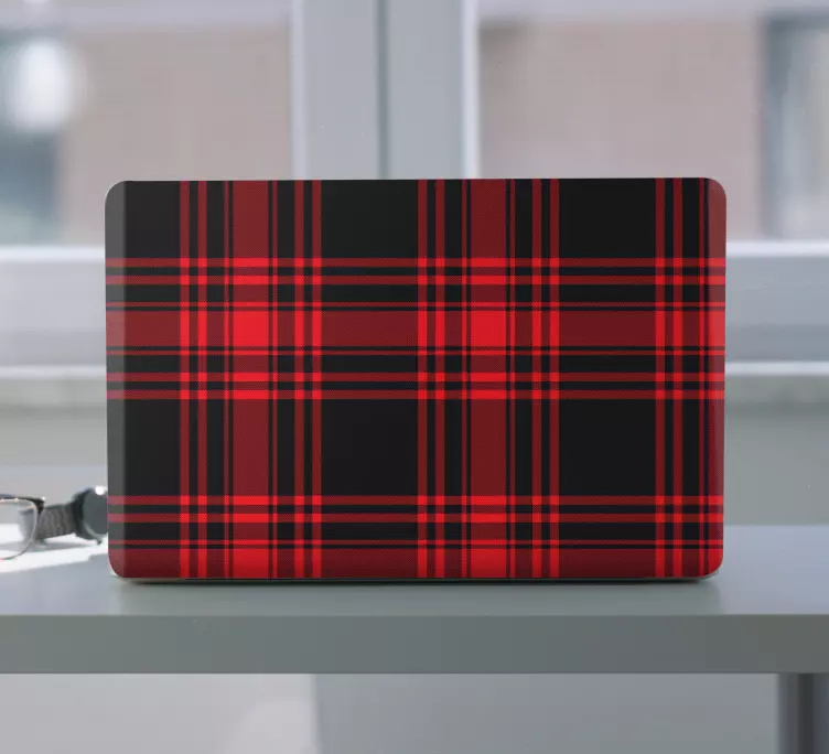 Transform your laptop into a statement piece with our Laptop skin with plaid texture surface. This unique design features a captivating tartan pattern that seamlessly blends the warmth of red tones with the elegance of black textile. The geometric layout creates a visually striking look that not only protects your device but also enhances its style. Made from quality fabric, this laptop skin is the perfect way to express your individuality and make your laptop stand out!