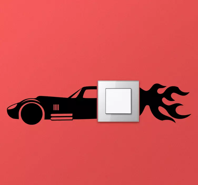 Rev up your home decor with our Light switch sticker racing car flames! This striking design features a dynamic silhouette of a racing car surrounded by vibrant flames, embodying the essence of speed and thrill. The bold black colors create an eye-catching contrast that brings a sense of excitement to any light switch in your home!
