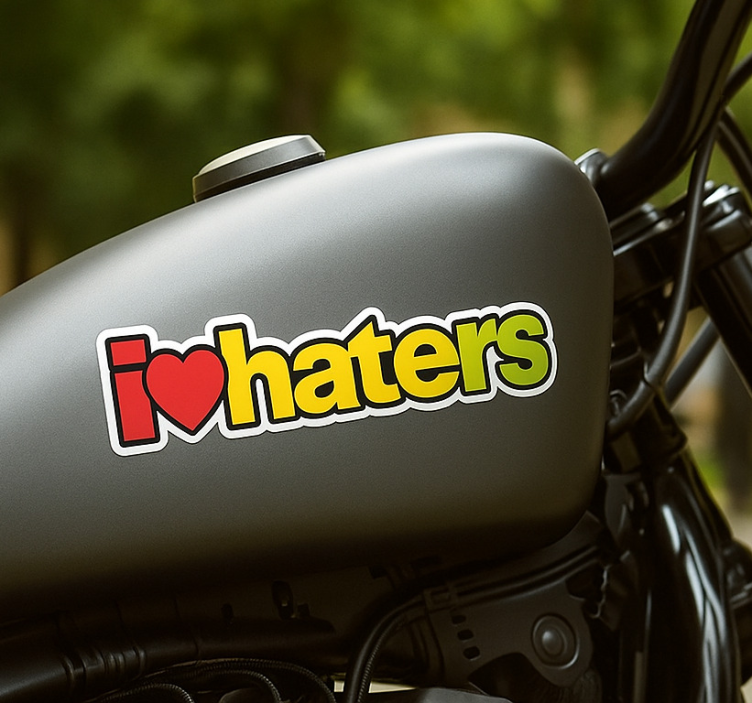 Reference: A54183Introducing the Motorcycle sticker hater love, a vibrant and eye-catching design that captures the essence of passion and rebellion on two wheels! This sticker features a striking combination of bold colors and intricate graphics that are sure to make a statement on any motorcycle. Whether you're a lover of speed or just enjoy the thrill of the ride, this design is perfect for showcasing your unique personality!