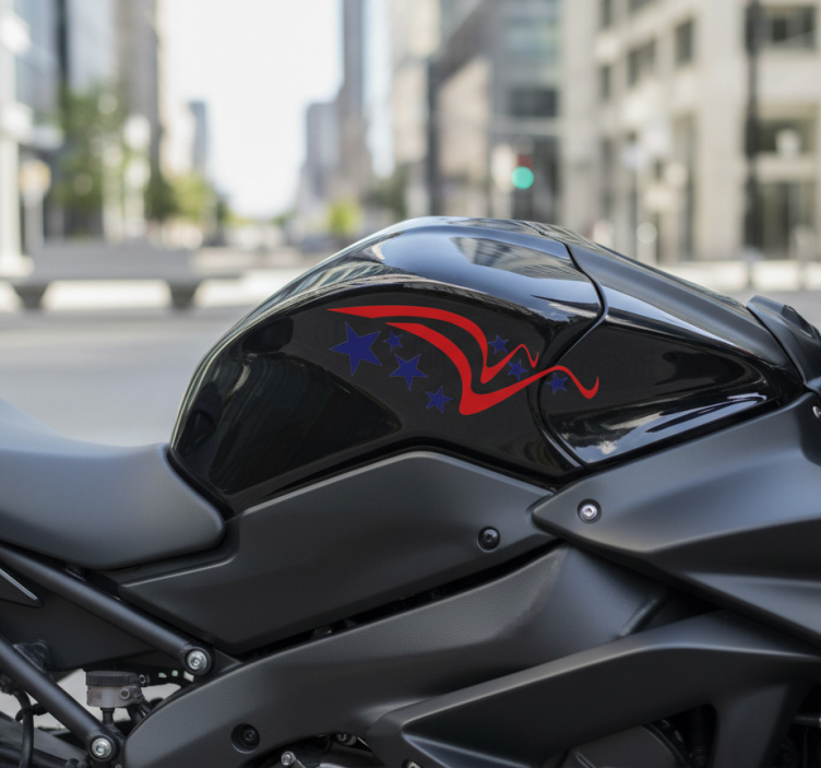 Reference: A54300Introducing the Motorcycle sticker stars of freedom fire, a vibrant and captivating design that embodies the spirit of adventure and freedom! This sticker features stunning star motifs that beautifully blend with fiery elements, creating a striking visual that will catch everyone's eye. Its high-quality finish ensures that the colors are vivid and long-lasting, making it the perfect decoration for any motorcycle enthusiast.
