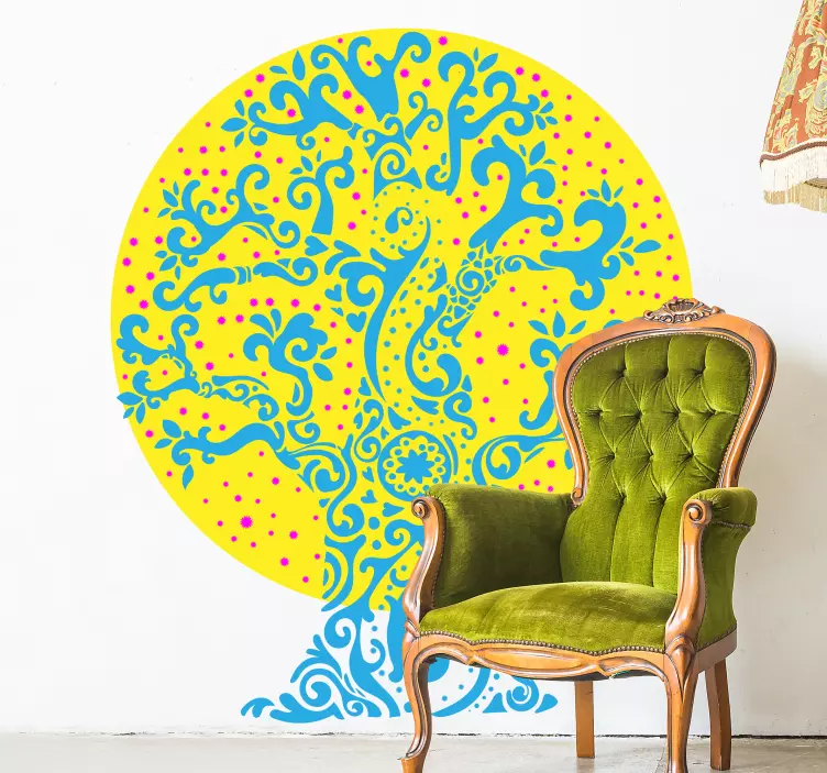 Transform your space with our Nature wall sticker colorful ornate tree, a vibrant tribute to the beauty of nature! This stunning design showcases an ornate tree, full of life and adorned with circular patterns, dots, and organic shapes that burst with color. The artistic depiction of a tree surrounded by colorful circles and spots brings a refreshing atmosphere to any room, making it a perfect addition for nature lovers and creative souls alike!