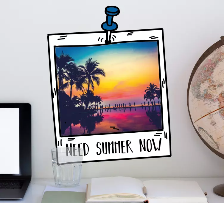 Transform your space into a vibrant escape with our Nature wall sticker summer landscape frame. This beautifully designed wall sticker features a stunning polaroid image that captures the essence of summer with a picturesque beach at sunset. The warm hues of the setting sun, combined with palm trees swaying gently in the breeze, evoke those summer vibes that we all cherish. With playful text woven into the design, it’s more than just a photo; it’s a piece of art that brings the warmth of summer into your home!