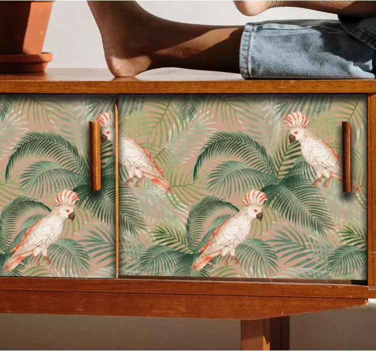 Transform your space with our stunning Nature wall sticker tropical parrots and palms. This vibrant design features lush leaves and playful parrots, combined with intricate feathers that bring the essence of the tropics into your home. The harmonious blend of furniture and palms creates a refreshing atmosphere, immersing you in the beauty of nature. Let this artwork breathe life into your walls, showcasing a captivating foliage scene that delights the senses with every glance!