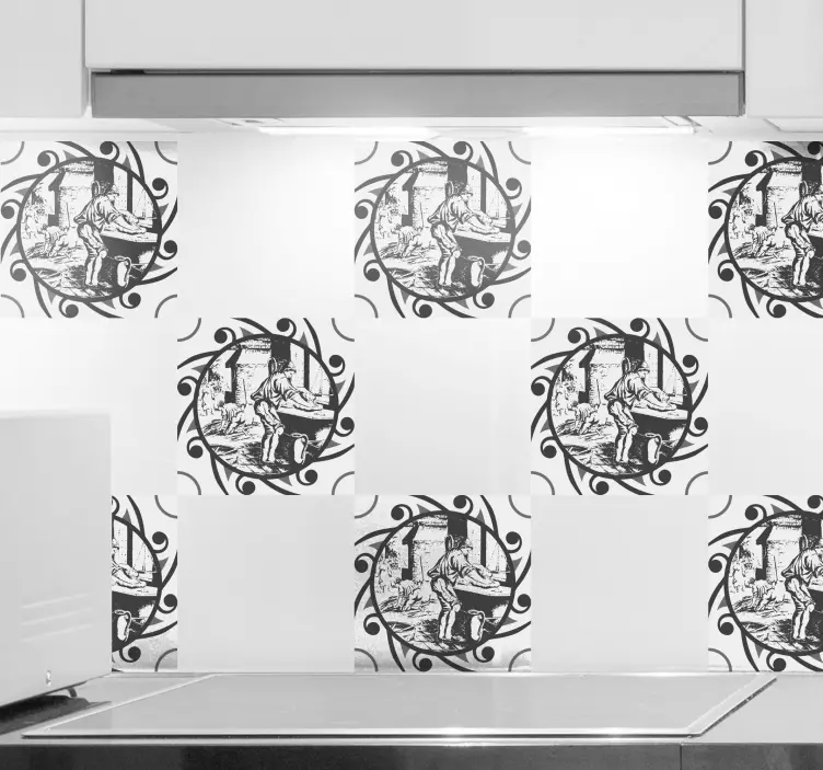 Introducing our stunning Object sticker vintage craft scene! This artistic design features a unique blend of baking, a person, a tile, and intricate engraving, all presented in a captivating black and white abstract style. Perfect for those who appreciate the beauty of craft and art, this sticker will add a touch of elegance and creativity to any space!