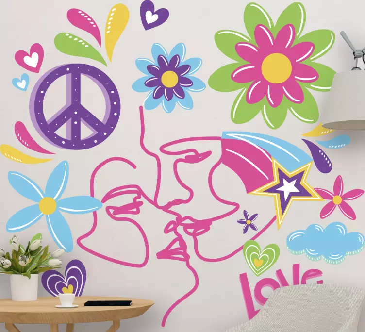 Transform your space with our Peaceful flower hearts decoration wall sticker, a vibrant and playful design that brings together colorful flowers and hearts in a unique line art style. This urban, romantic symbol of love and peace adds a cheerful touch to any environment, making it perfect for those who appreciate artistic expression and want to create a joyful atmosphere.