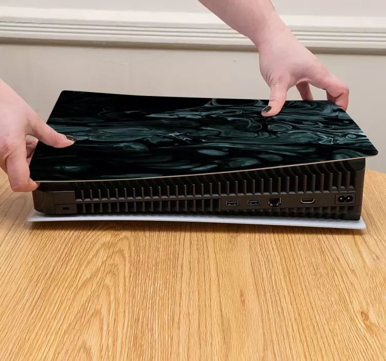 Applying the Ps5 skin fluid abstract design PS5 skin is a breeze! Simply clean the surface of your console, peel off the backing, and stick it on. Adjust as needed for a perfect fit!