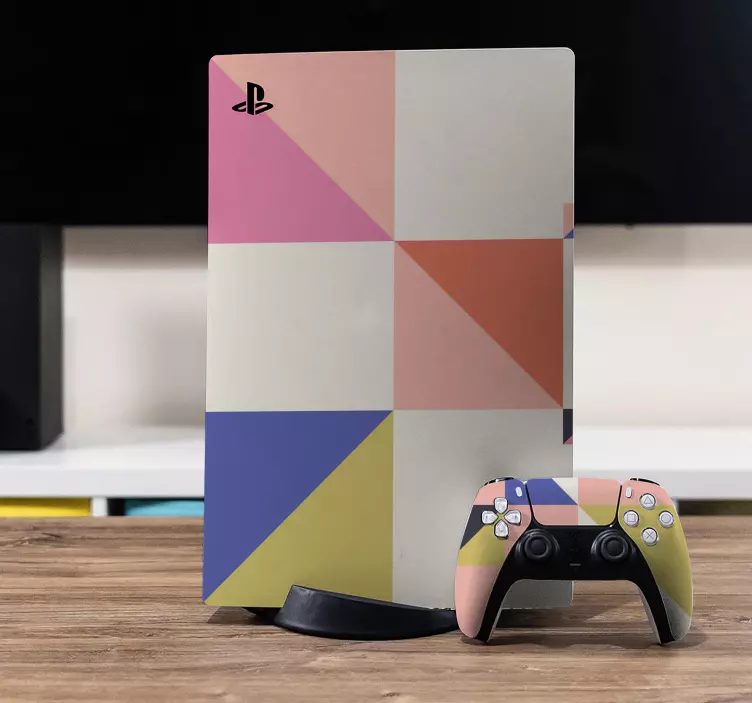 Transform your gaming experience with our Ps5 skin in bright color designs, featuring vibrant geometric patterns that include triangles and squares in a multicolor palette. This eye-catching sticker not only enhances the aesthetic of your PlayStation 5 but also brings a lively touch to any space!