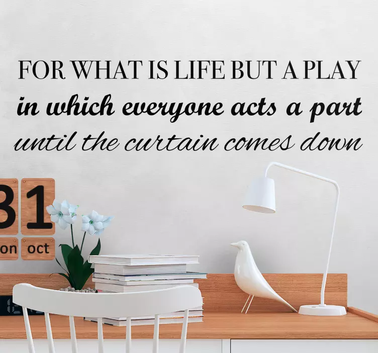 Reference: A49740A thought-provoking phrase reflects the notion that life is akin to a theatrical performance, where each individual plays a significant role until the end. This message encourages appreciation for life's transient nature and the importance of every action taken.