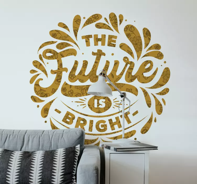 Brighten up your space with our stunning Quote sticker the future is bright. This eye-catching design features uplifting text and a vibrant yellow color that radiates positivity and inspiration. The floral elements beautifully complement the typography, creating a delightful visual that encourages a hopeful outlook on the future!