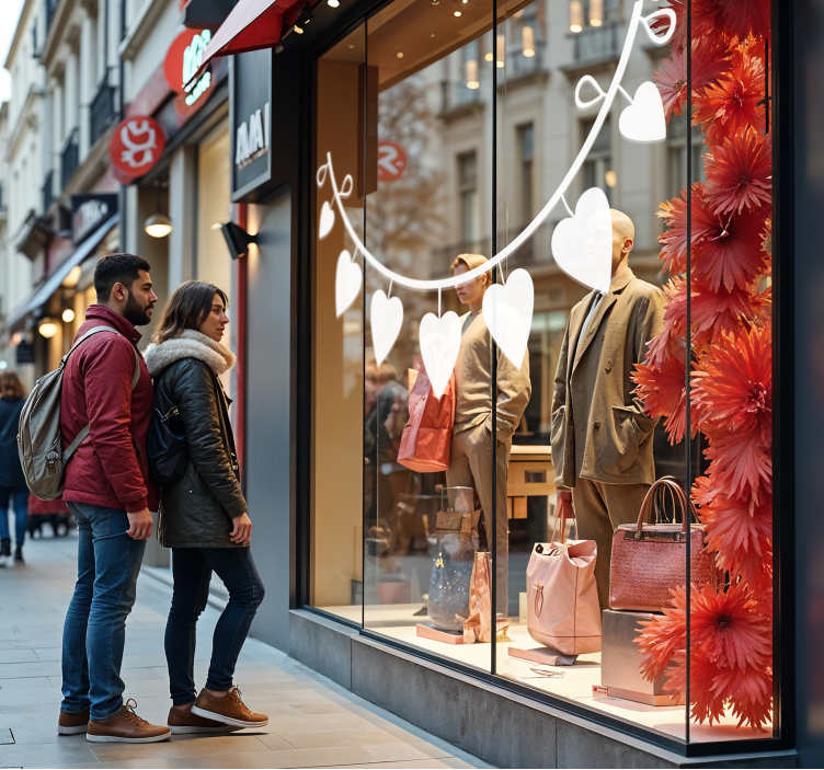Reference: A40830Introducing our stunning semicircle hearts valentine's sticker, designed to bring a touch of romance and joy to your shop front or shop window! This delightful design features adorable hearts that seem to hang in mid-air, creating an enchanting atmosphere perfect for Valentine's Day celebrations. Whether you're looking to attract customers or create a loving ambiance, this sticker is the ideal choice for any Valentine-themed display!