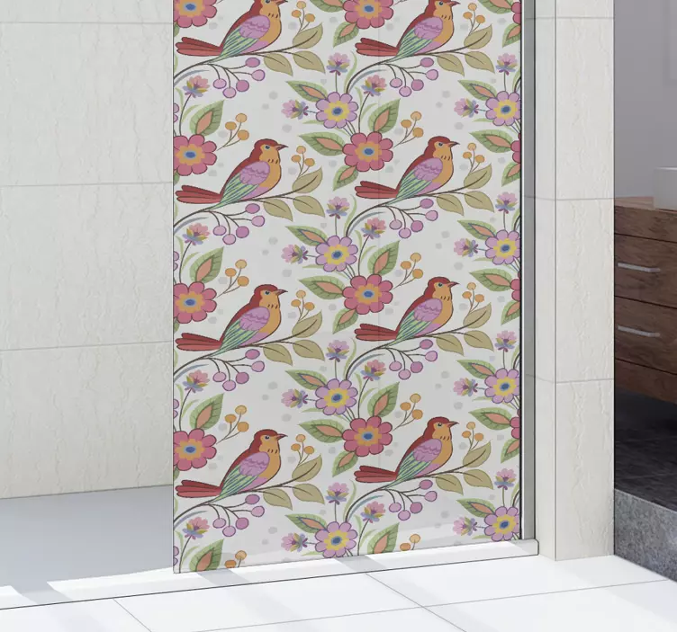 Transform your bathing experience with our Shower screen sticker colorful birds design! This vibrant design features an enchanting array of colorful birds and delicate flowers, creating a delightful pattern that brings the beauty of nature right into your bathroom. The blend of hues elevates your space, making every shower feel like a refreshing escape into a lively garden!