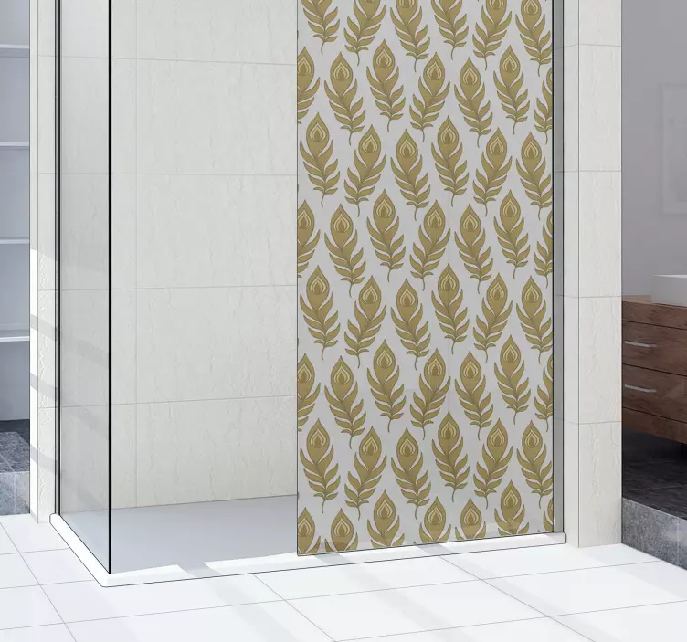 Transform your bathroom with our stunning Shower screen sticker elegant leaf design. This exquisite design features intricate florals and leaves, beautifully intertwined with feathers, creating a harmonious pattern that brings a touch of nature indoors. The delicate golden accents add a sense of finesse, making this decorative piece a perfect addition to any shower screen.