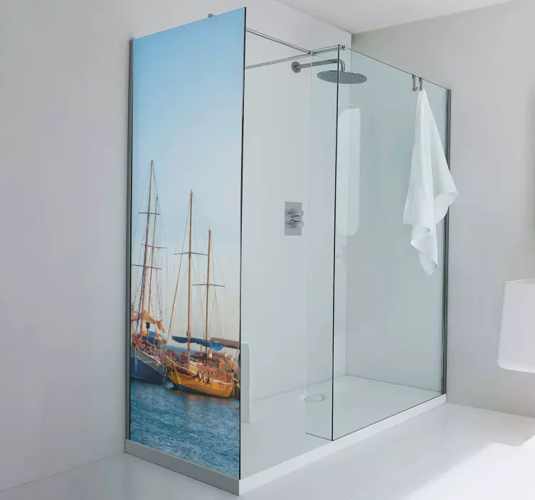 Transform your bathroom into a serene maritime escape with our Shower screen sticker sailing boats scene. This stunning design features graceful boats sailing through tranquil waters, set against a picturesque dock and harbor backdrop. Ideal for anyone who loves the marine and nautical lifestyle, this sticker captures the essence of outdoor transportation and brings a refreshing touch to your shower space.