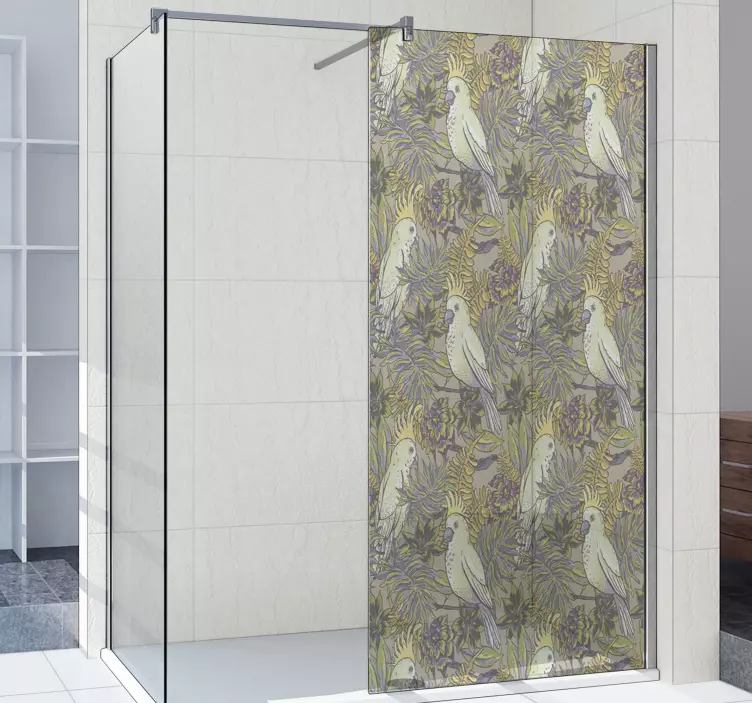 Transform your bathroom into a serene escape with our Shower screen sticker with elegant bird designs. This exquisite design features stunning parrots surrounded by lush leaves and vibrant flowers, creating a nature-inspired floral pattern that is both decorative and elegant. The beauty of birds gracing your shower screen will bring a sense of calm and tranquility to your daily routine!