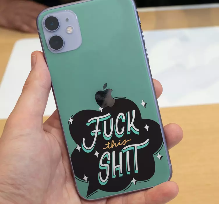 Introducing our unique design iPhone sticker that features a playful and edgy graphic style! This design showcases bold text intertwined with expressive words like 'fuck' and 'shit', creating a striking visual statement that transforms your phone into a personal expression of your mood and personality. Perfect for those who love to stand out, this sticker is not just a decoration; it’s a bold statement!