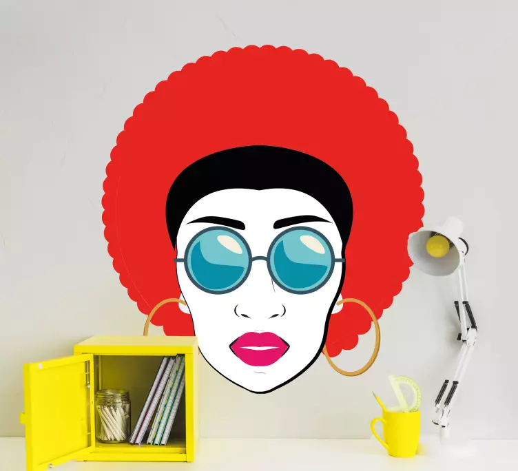Introducing our stunning Wall sticker bold afro portrait, featuring a vibrant illustration of a woman with a magnificent afro. This colorful design captures the essence of femininity, adorned with stylish sunglasses and chic accessories, creating a lively and artistic atmosphere in any space!