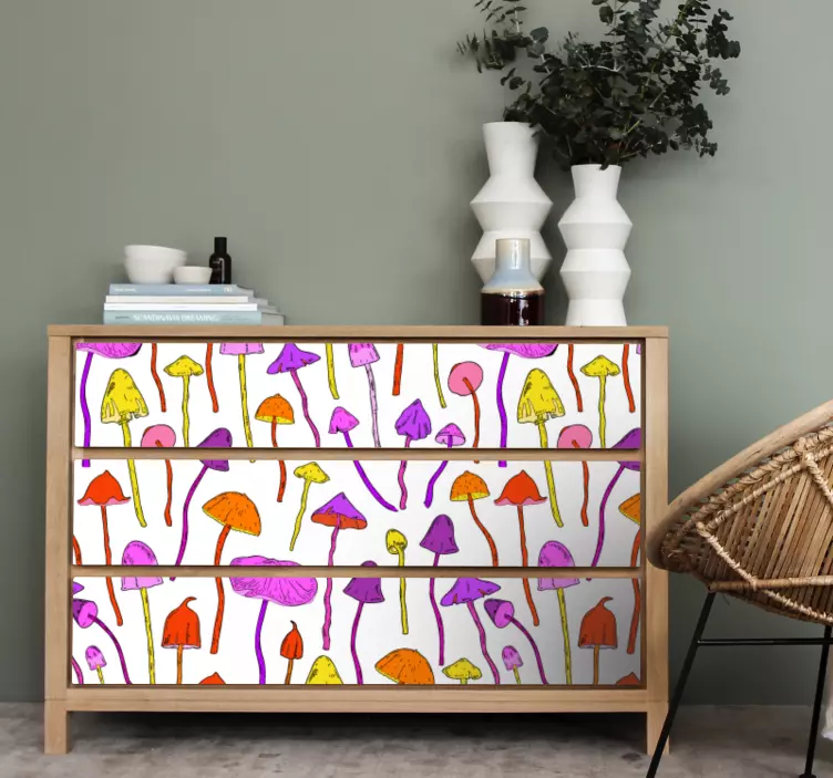 Transform your space with our vibrant Wall sticker colorful mushroom designs! This stunning design features a whimsical pattern of mushrooms that evoke a psychedelic flair, bringing the essence of nature indoors. The colorful illustrations showcase intricate flora that can effortlessly enhance your furniture and decor. Perfect for those looking to add a touch of joy and creativity to their environment!