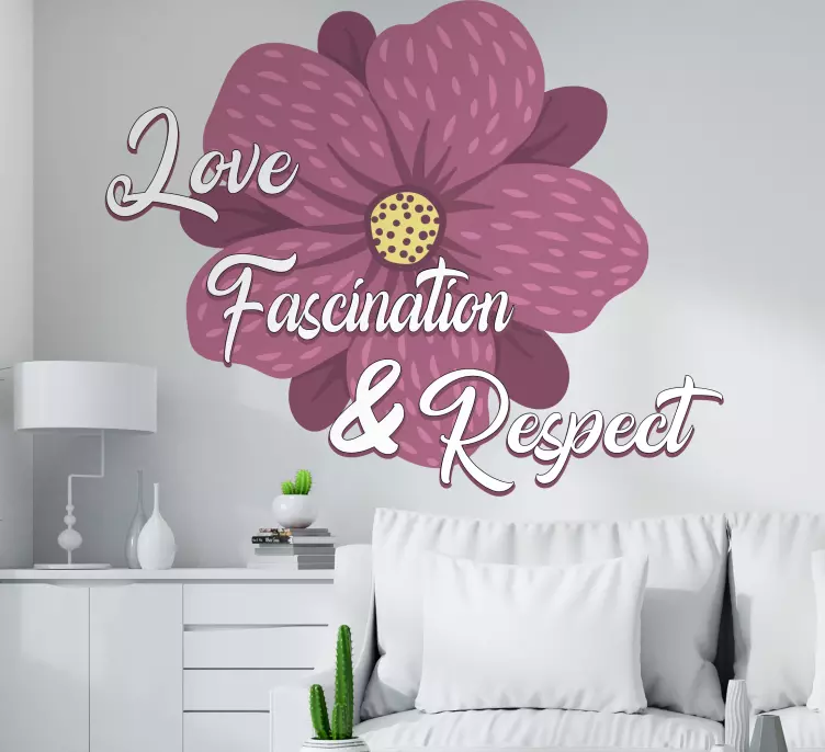Reference: A48132This design features a beautiful flower along with a heartfelt message emphasizing love, fascination, and respect. The bold typography and floral elements create a warm ambiance, making it perfect for enhancing personal spaces with positive affirmations.