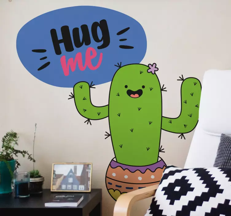 Introducing our Wall sticker playful cactus character, a delightful design that brings a touch of whimsy to any space! This cheerful cartoon cactus showcases a cute character with a big smile, ready to hug you with its vibrant colors and playful charm. Perfect for adding a fun and colorful atmosphere to your home or office, this lovely plant design is sure to brighten your day!