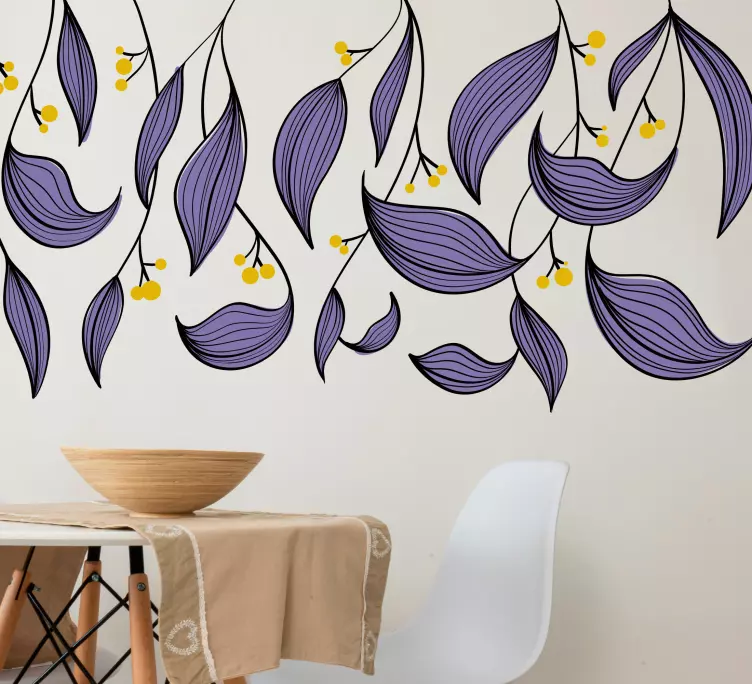 Transform your space with our stunning Wall sticker purple leaf pattern. This elegant design features hanging leaves and beautiful flowers, bringing a vibrant touch of nature to any room. The rich purple tones and colorful floral elements create a decorative yet sophisticated atmosphere that is sure to captivate anyone who enters. Perfect for adding a splash of creativity and warmth!