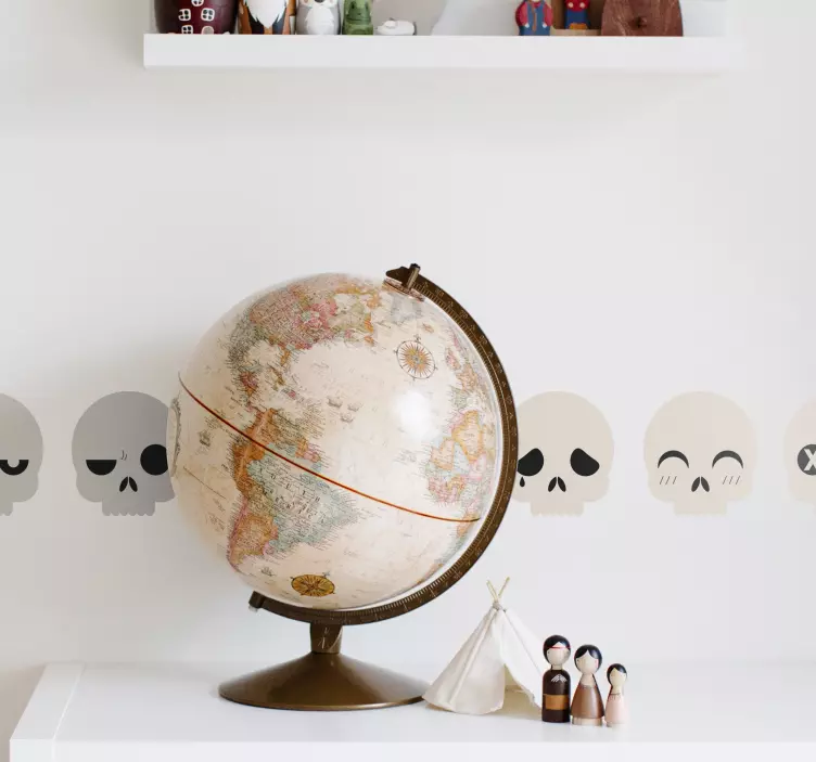 Transform your space with our Whimsical skull faces wall sticker, featuring playful pirate skulls and expressive characters that create a truly decorative experience. The design is adorned with vibrant colors and intricate borders that bring a sense of fun and personality to any room!