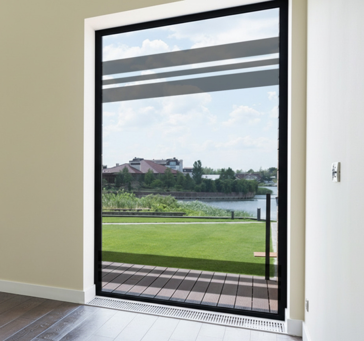 Reference: A53832Transform your space with our Window sticker dark grey horizontal stripes. This stunning design features elegant horizontal stripes in a dark grey hue, adding a modern touch to any window or flat surface. Crafted with a satin finish, it ensures minimal glare while enhancing color vibrancy. Enjoy the beauty of this sticker without distractions from reflections, making it perfect for both indoor and outdoor settings!