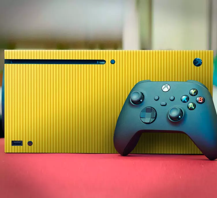 Transform your gaming experience with our Xbox wrap lively gaming sleeve, featuring vibrant graphics that celebrate the world of video games. The design is a stunning blend of yellow stripes, perfectly tailored to enhance the look of your console and controller. This sticker not only showcases your passion for gaming but also adds a lively touch to your setup!