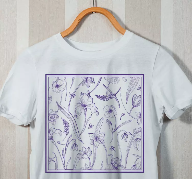Introducing our stunning Botanical motif arrangement t-shirt, a beautiful blend of nature-inspired design and artistic flair! This t-shirt features a delightful crocus and floral illustration that brings to life an array of purple flowers, set against a captivating pattern background. The intricate sketch captures the essence of botanical art, making this t-shirt not just an article of clothing but a statement piece that celebrates the beauty of nature!