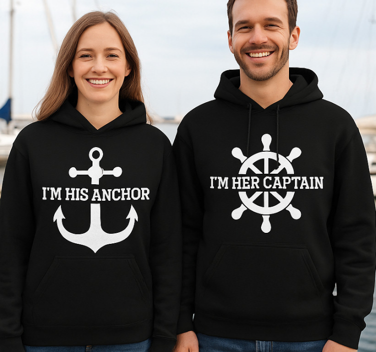 Embrace your love story with the Couple t-shirt captain and anchor design couple t-shirt. This t-shirt is not just a piece of clothing; it's a statement of your connection. Wearing it together can ignite joy, inspire adventure, and create unforgettable memories. It's perfect for casual outings, romantic dates, or just lounging at home!