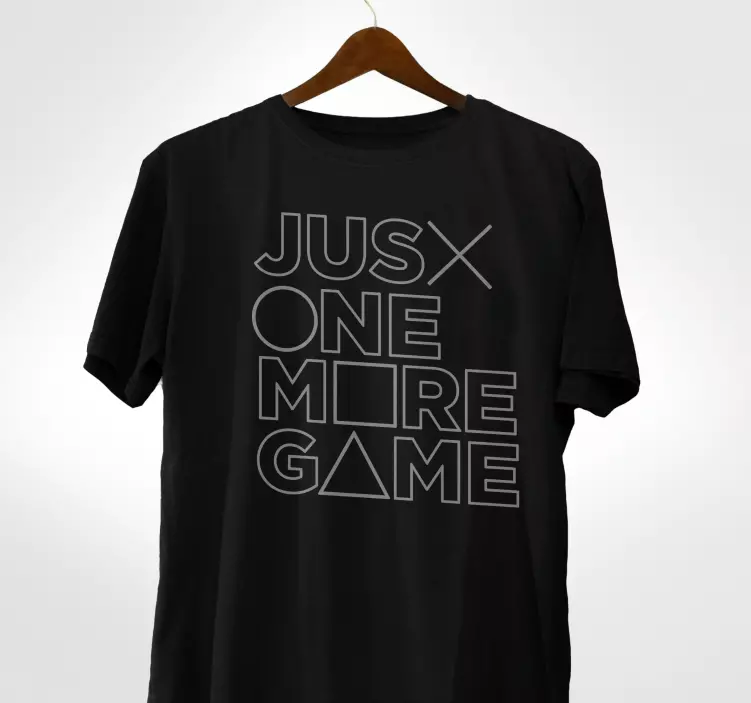 Introducing the Just one more round t-shirt, a perfect blend of fun and style! This unique design features an eye-catching graphic that incorporates the words 'one' and 'more' alongside geometric shapes, making it an ideal choice for gaming enthusiasts. Crafted in a sleek black color, this casual t-shirt promises to elevate your wardrobe with its playful yet sophisticated vibe.