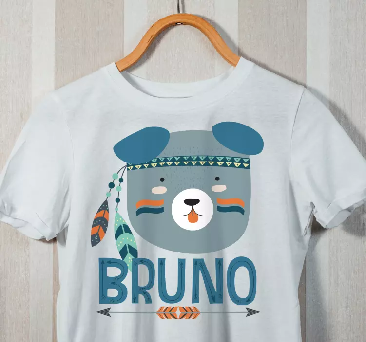 The Kids t-shirt with adorable bear design showcases a delightful illustration of a playful bear, surrounded by colorful feathers that spark joy in every child! This charming design features an animal theme that includes a cute dog, making it not only visually appealing but also personalizable with your child's name. It's the perfect attire for playful adventures!