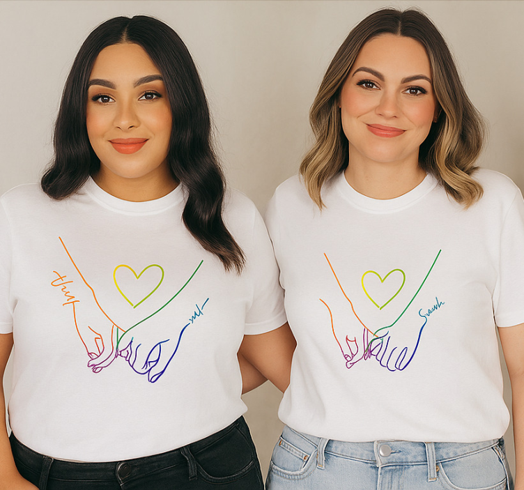 Keeping your Lgbt heart couple t-shirt couple t-shirt looking fresh is easy! Simply machine wash it at 30 degrees for best results. To maintain the vibrant colors and design, we recommend ironing inside out or using a barrier cloth when ironing directly on the print. With just a little care, your favorite t-shirt will stay vibrant and stylish!
