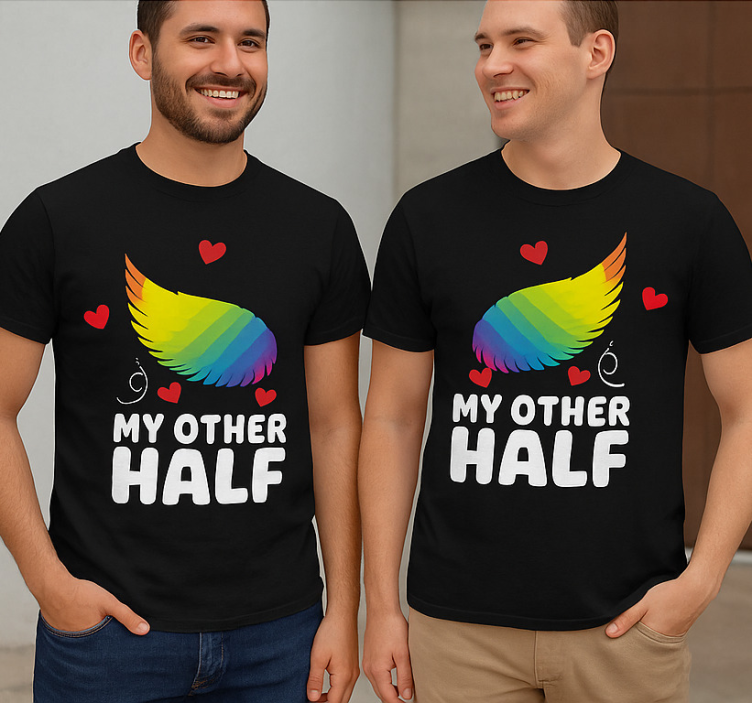 The Lgbt my other half couple t-shirt is more than just a piece of clothing; it's a celebration of love and connection! Wearing this couple t-shirt not only expresses your commitment to each other but also spreads a positive message of inclusivity and acceptance. It’s perfect for pride events, casual outings, or simply lounging at home. Embrace your relationship and share your love story with this stunning t-shirt!
