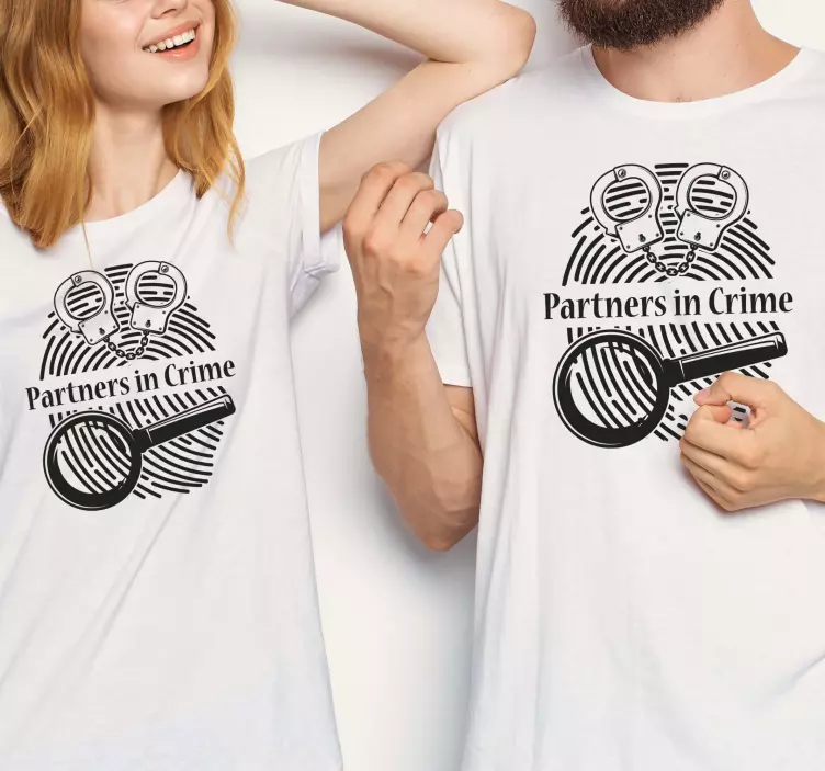 Surprise your partner with this fun design and make everyone around you smile. These t-shirts are a great way to show off your connection and sense of humor. Order your matching partners in crime t-shirts today and become the envy of all your friends!