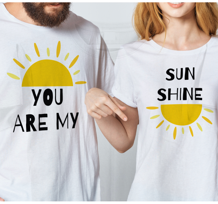 Reference: T5107This charming design features a couple wearing matching tops adorned with cheerful sun motifs and warm, affectionate phrases. The sunny colors evoke feelings of joy and connection, making it a perfect choice for expressing love in a delightful way.