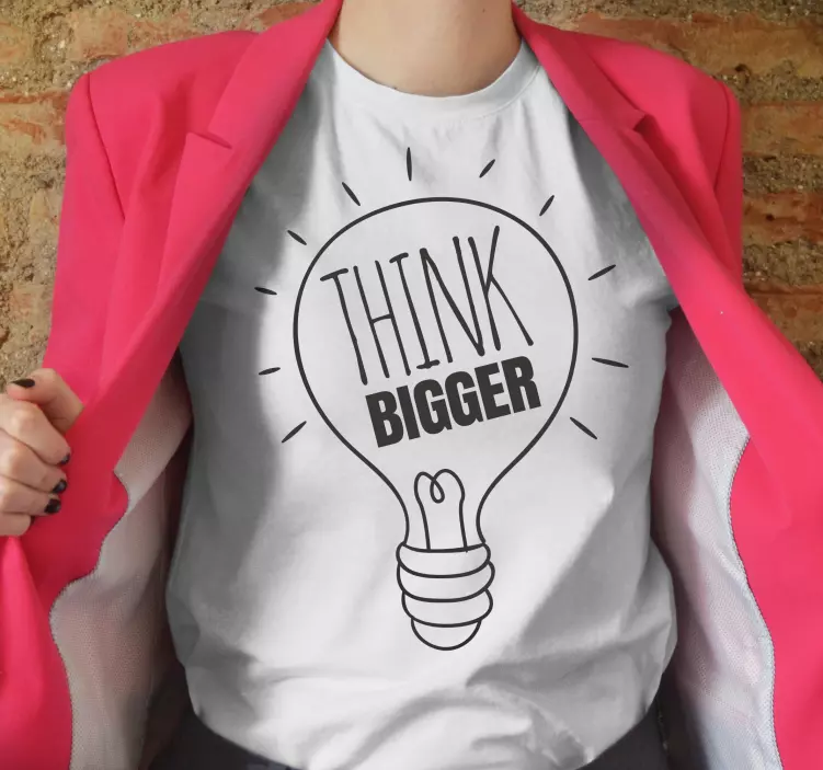 Reference: T4862This design showcases a light bulb with the phrase 'Think Bigger' in bold letters. The imagery evokes a sense of inspiration and positive thinking, using simple yet powerful visuals that resonate with a motivational theme.